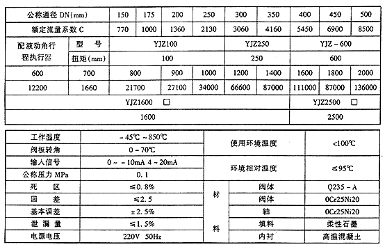 用途 本碟閥與電液動角行程執(zhí)行機構(gòu)配套使用,在冶金、建材、化工、電力等生產(chǎn)過程中、對管道中的高溫介質(zhì)按不同的控制信號改變其流量大小,從而實現(xiàn)工業(yè)生產(chǎn)過程的自動控制和遠程控制。 主要技術(shù)參數(shù)